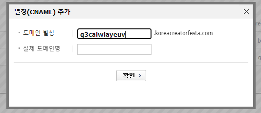 맞춤도메인에 연결하고자 하는 도메인을 입력해야 합니다.