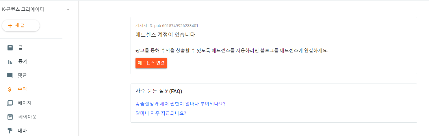 지금 블로그가 티스토리이긴 하지만, 티스토리는 이미 광고권을 빼앗아간 상황이라 너무 연결하기 싫었어요.