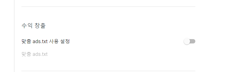 만약 수동으로 ads.txt를 입력하고 싶다면 설정에서 수익창출이라는 항목에서 진행하면 됩니다.