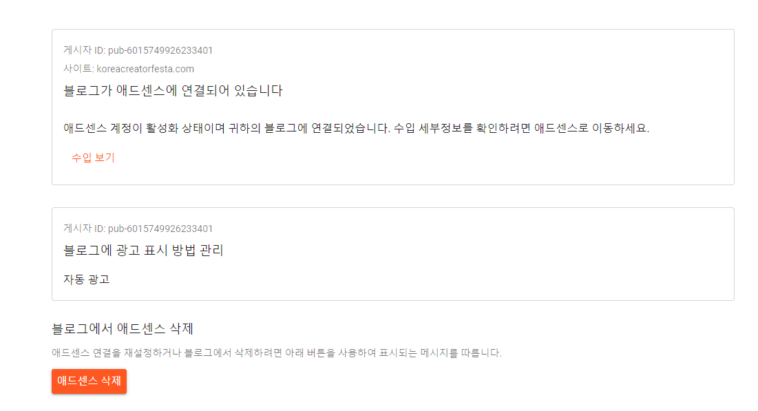또한 원래의 목적이였던 애드센스도 세팅해야 하죠.
