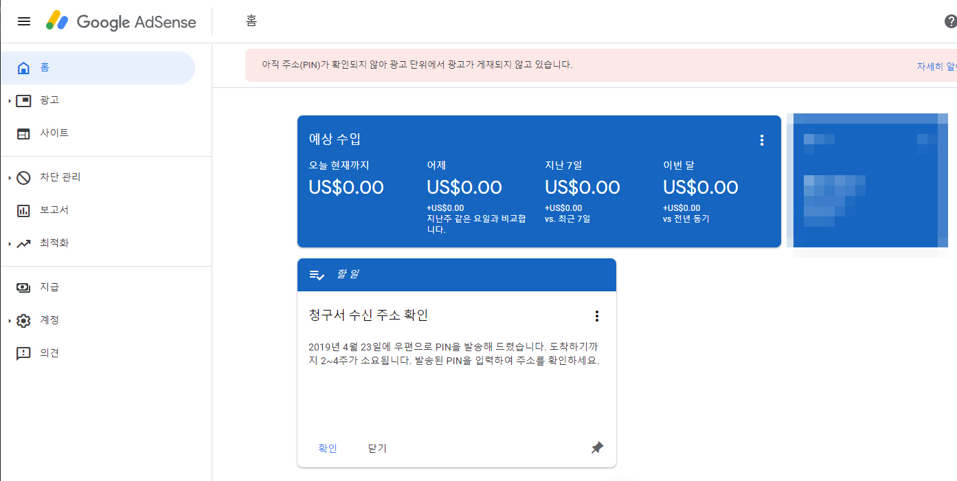 접속해서 보니... 아직 PIN주소를 확인하지 않았다고 한다.