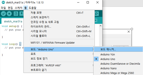 '툴' > '보드' > '보드매니저'를 선택합니다.