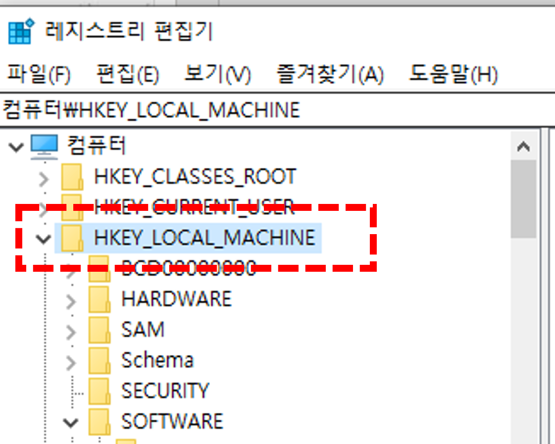 - 경로를 따라 'HKEY_LOCAL_MACHINE > SOFTWARE > Microsoft > Windows > CurrentVersion > Policies > System'으로 이동합니다.
