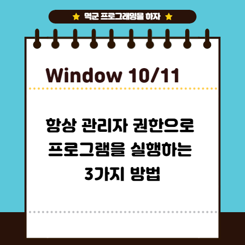윈도우10 혹은 11 사용 중, 특정 프로그램이나 파일을 항상 관리자 권한으로 실행해야 하는 상황에 처한 적이 있으신가요? 관리자 권한은 시스템 파일이나 중요한 설정을 수정할 때 필요한 권한입니다. 이번 글에서는 윈도우10에서 프로그램을 항상 관리자 권한으로 실행하는 세 가지 방법을 알아보도록 하겠습니다.