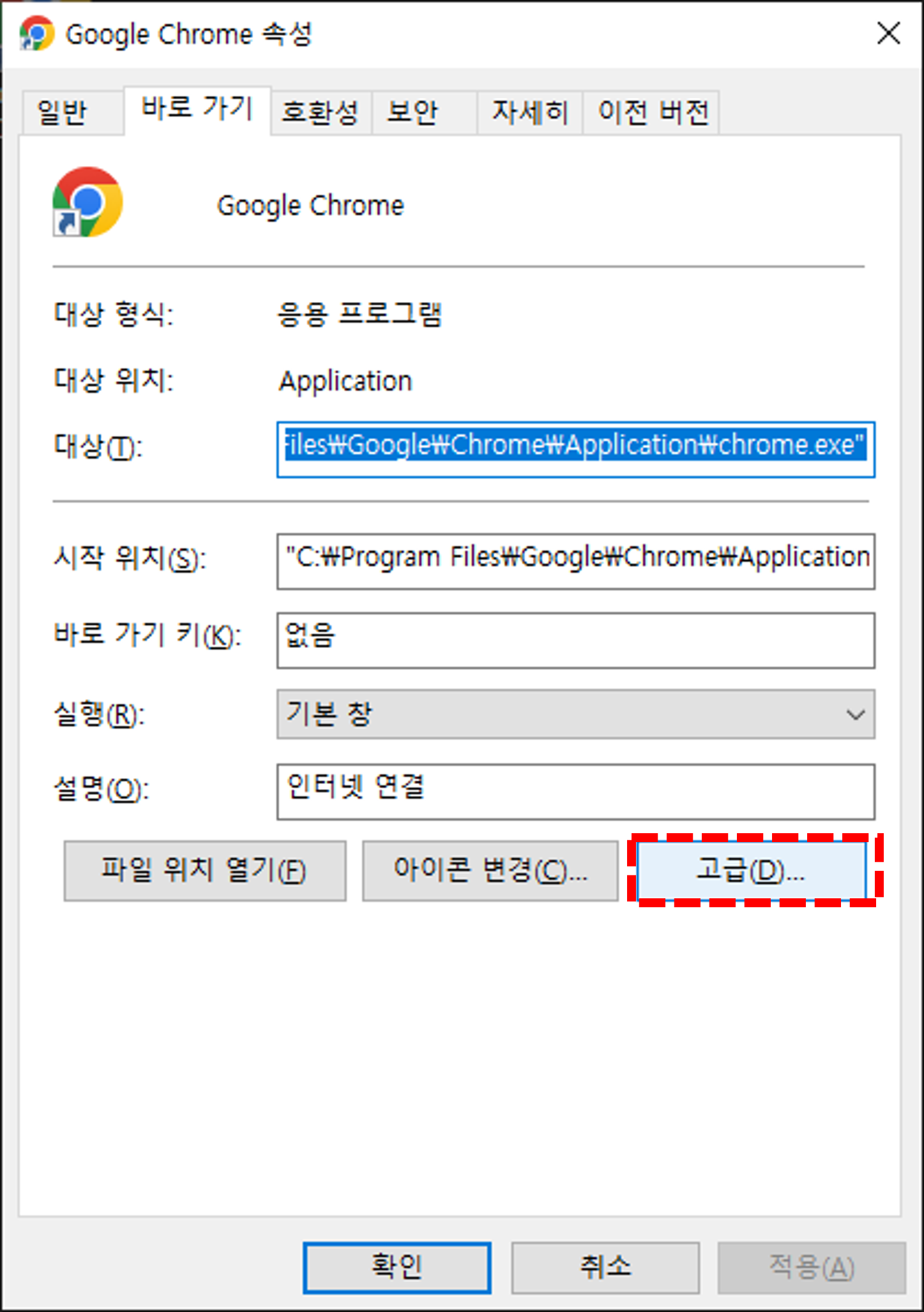 - '고급(D)' 버튼을 클릭합니다.