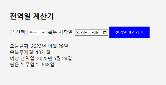 전역일 계산기는 사용자가 웹 페이지에서 간편하게 복무 기간을 계산할 수 있답니다.
