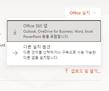 먼저 https://potal.office.com 에 접속해서 준 계정으로 로그인 한 다음 OFFICE 365 앱을 다운받아서 설치