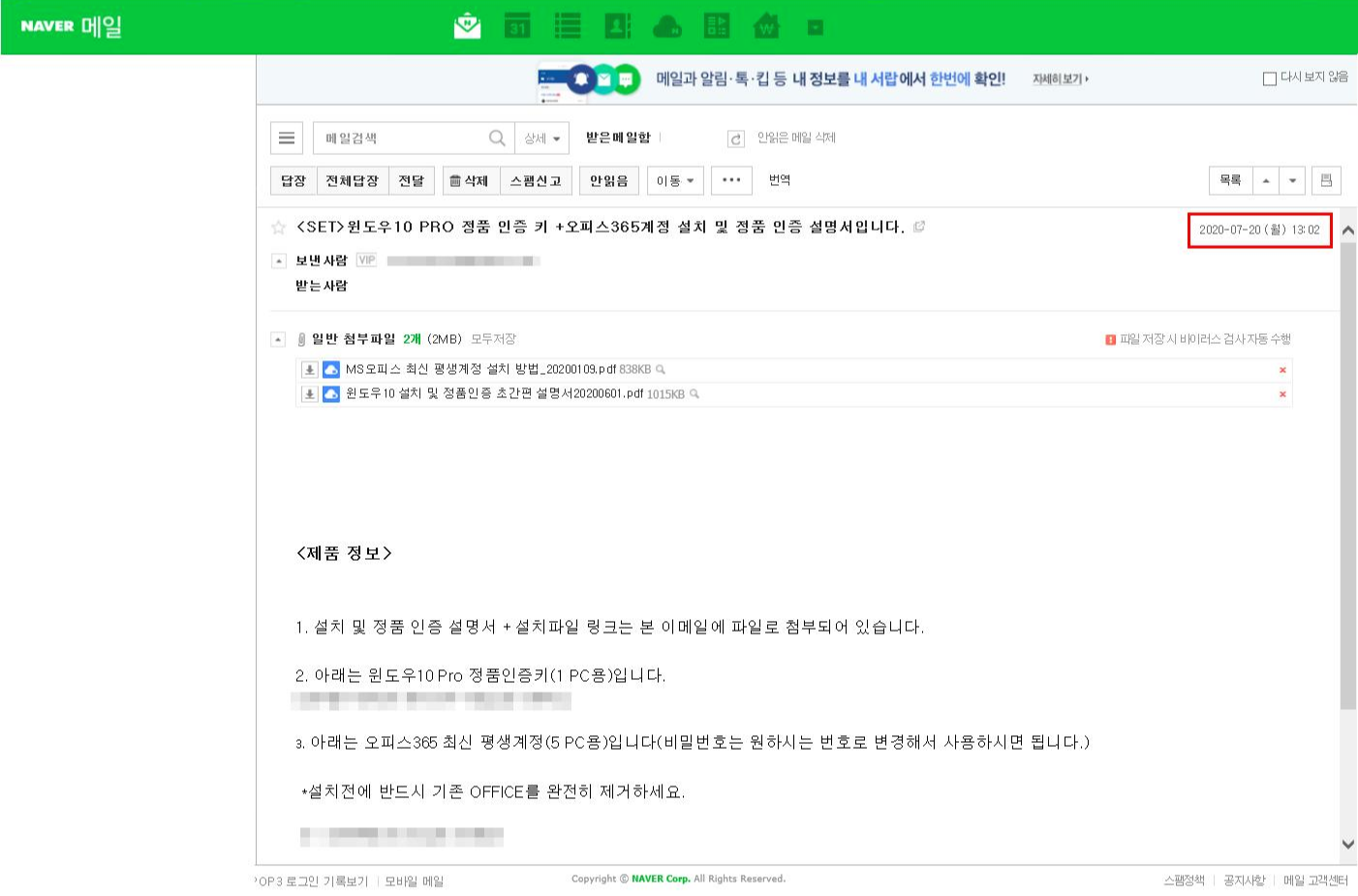 윈도 10 프로 시디키와 오피스 365 로그인을 할 수 있는 계정이 날아왔다.