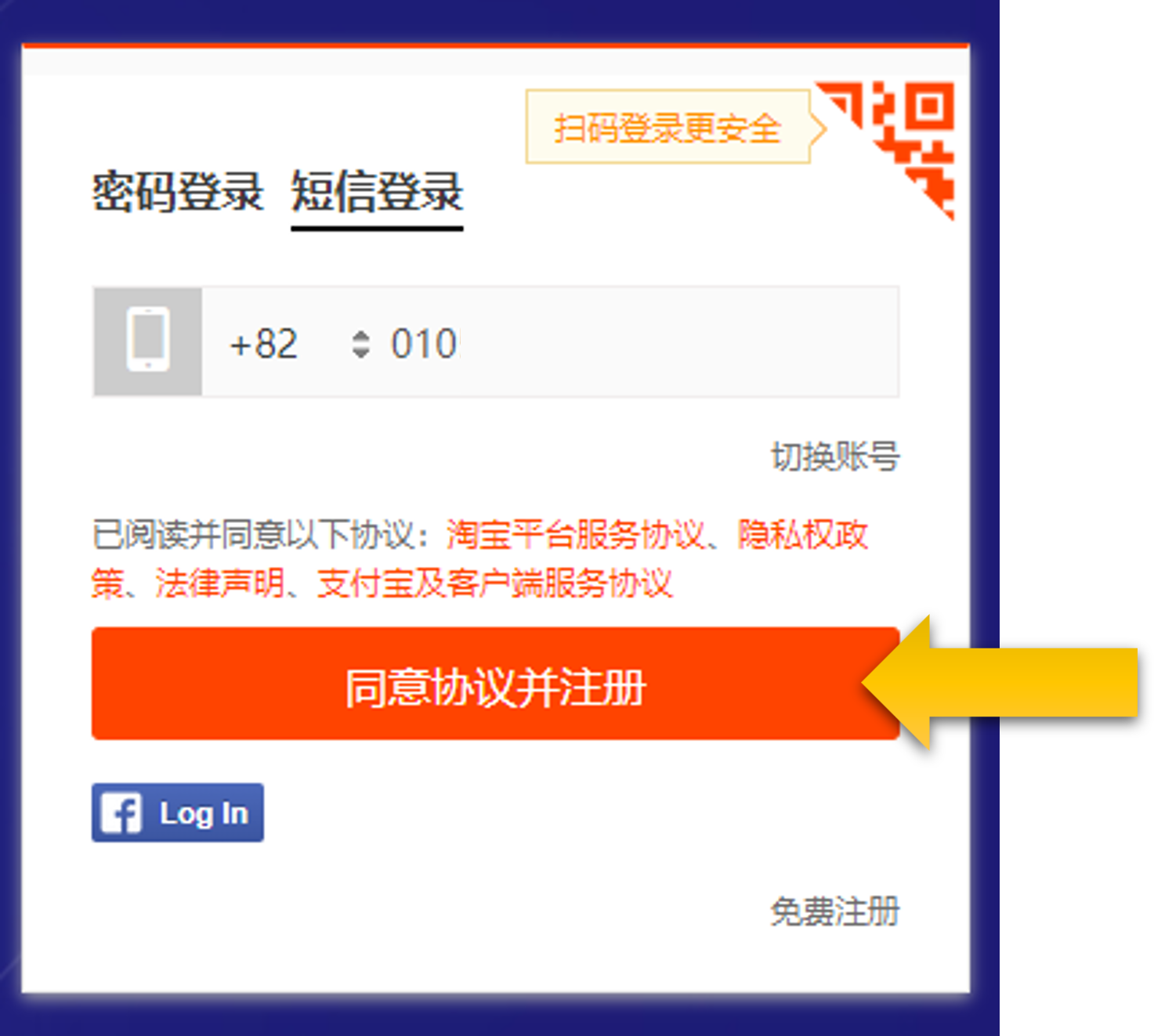 已阅读并同意以下协议:淘宝平台服务协议、隐私权政策、法律声明、支付宝及客户端服务协议
