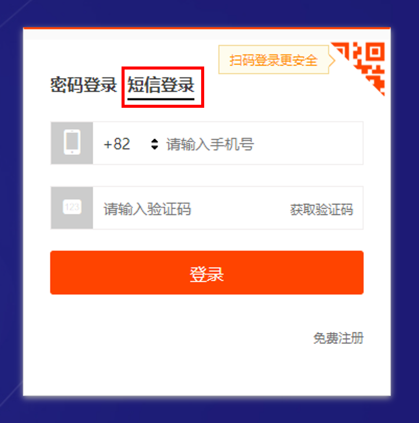 短信登录(두안싱덩루) 를 선택... SMS 로그인 이라는 뜻이라고 한다.