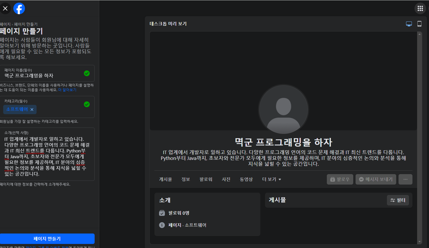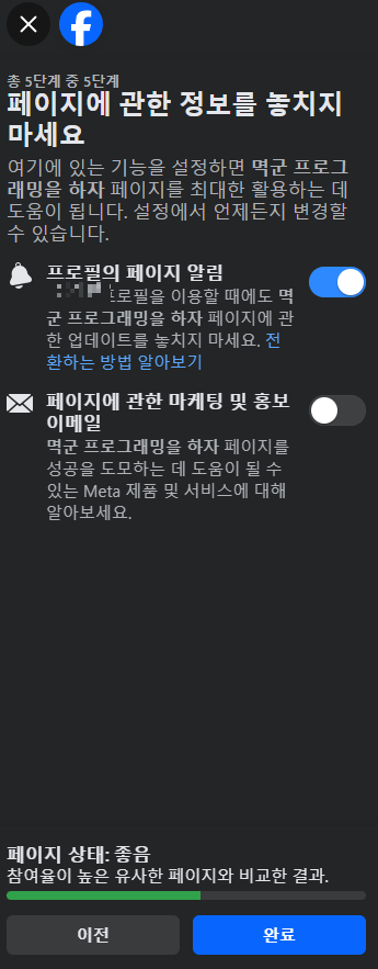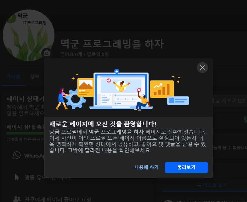 8. 페이스북 페이지 만들기 완료
