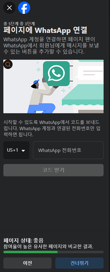 그다음엔 와츠앱을 연결 해둘껀지 물어보는데 전 그냥 건너뛰였습니다.