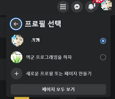 드롭다운 메뉴에서 '새로운 프로필 또는 페이지만들기'를 선택합니다.