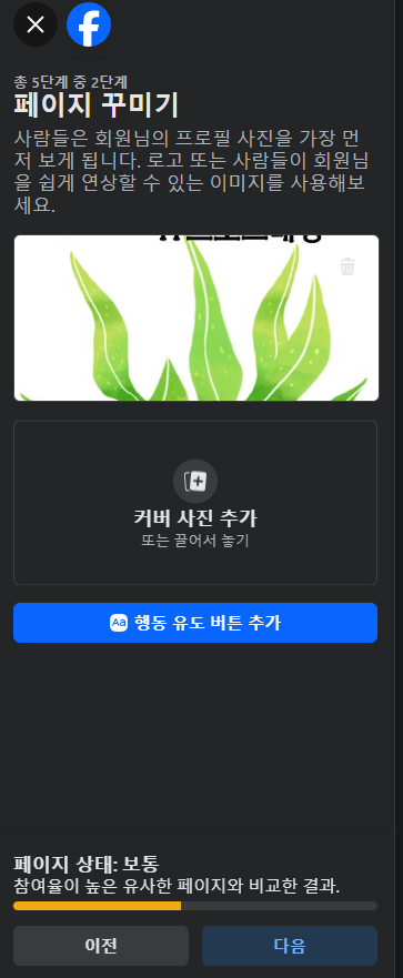 페이지를 대표할 프로필 사진과 커버 사진을 업로드합니다.