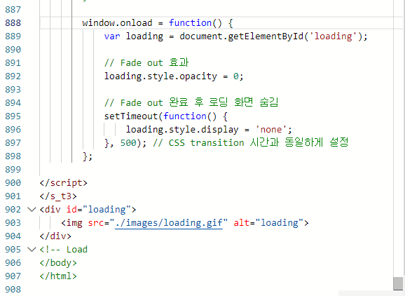 아래는 완성된 소스 코드입니다. 이 코드는 티스토리 블로그에 로딩 화면을 추가하는 데 사용할 수 있으며, 페이지의 모든 콘텐츠가 로드될 때까지 로딩 이미지를 표시합니다.