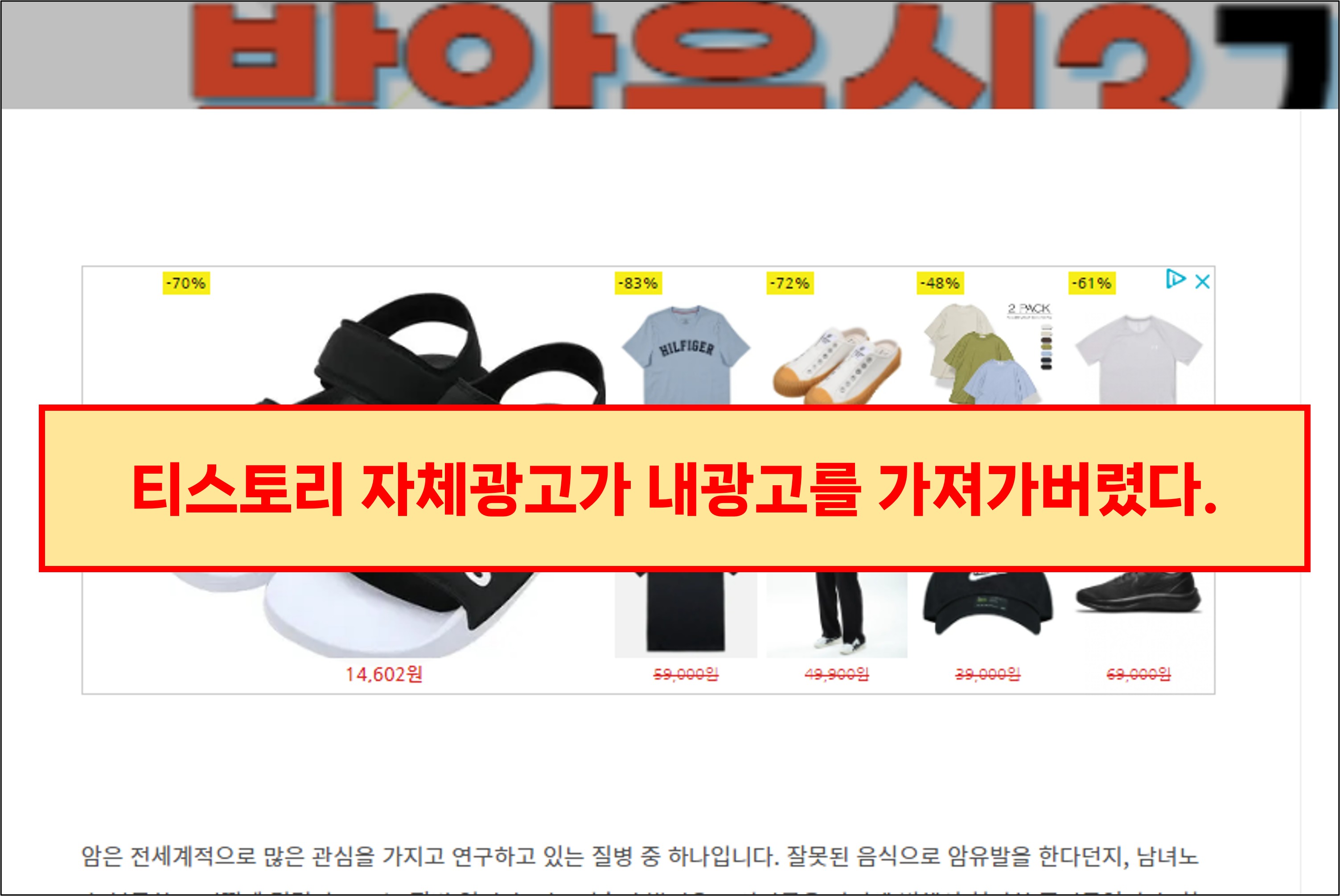 티스토리자체광고가 포스팅에 생겼다.