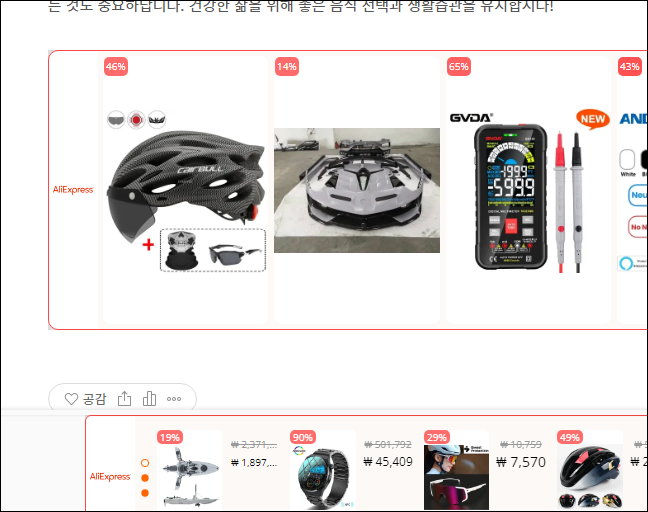 - 본문 상단 혹은 하단 중 한 곳에 랜덤으로 노출됩니다.
