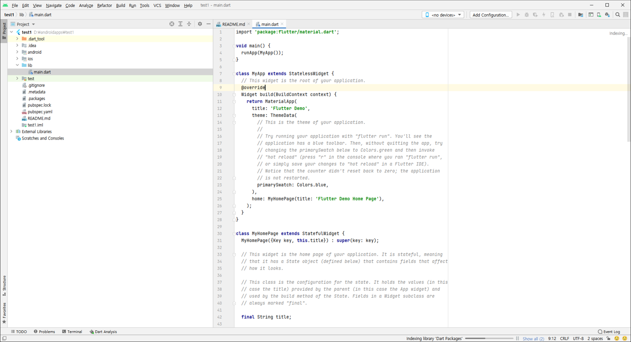 (나는 간단하게 d\flutter 에 위치)