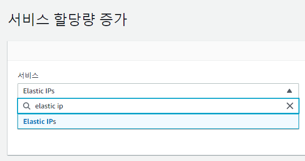 4. 서비스 할당량 증가페이지로 넘어왔다면, 서비스에서 Elastic IPs를 입력해서 찾습니다.