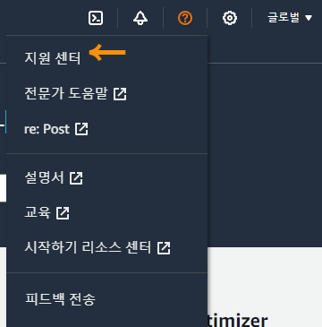 1. AWS Management Console에서 Support 서비스로 이동합니다.