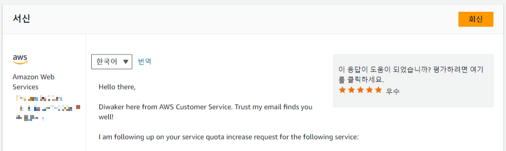 이는 AWS Management Console에서 Support Center로 이동하여 새로운 한도 증가 요청을 제출하면 됩니다.