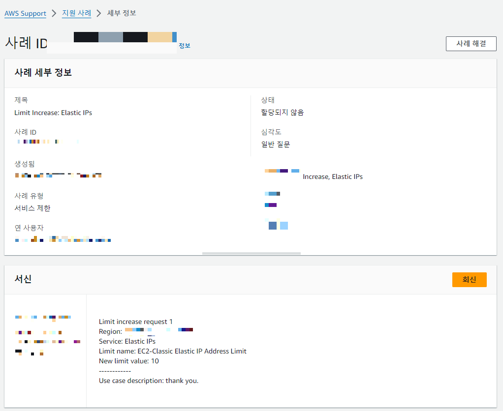 Elastic IP가 더 필요할 경우 AWS Support를 통해 한도 증가 요청을 할 수 있습니다.