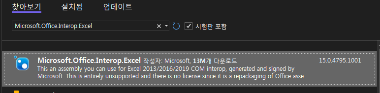 프로젝트를 시작하기 전에, Microsoft.Office.Interop.Excel 라이브러리를 설치해야 합니다. 이 라이브러리는 Excel 파일과 상호작용하는 데 필요합니다.