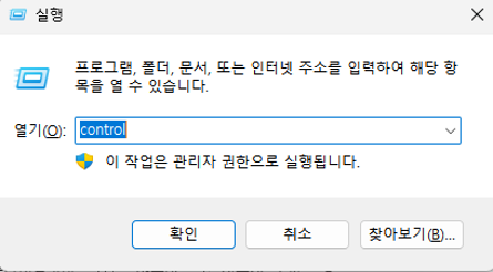 시작 메뉴를 클릭하여 컨트롤 패널을 검색하고 열어주세요. 혹은 키보드의 'Win + R'을 눌러 실행 창을 열고 'control'을 입력하면 컨트롤 패널을 빠르게 열 수 있습니다.