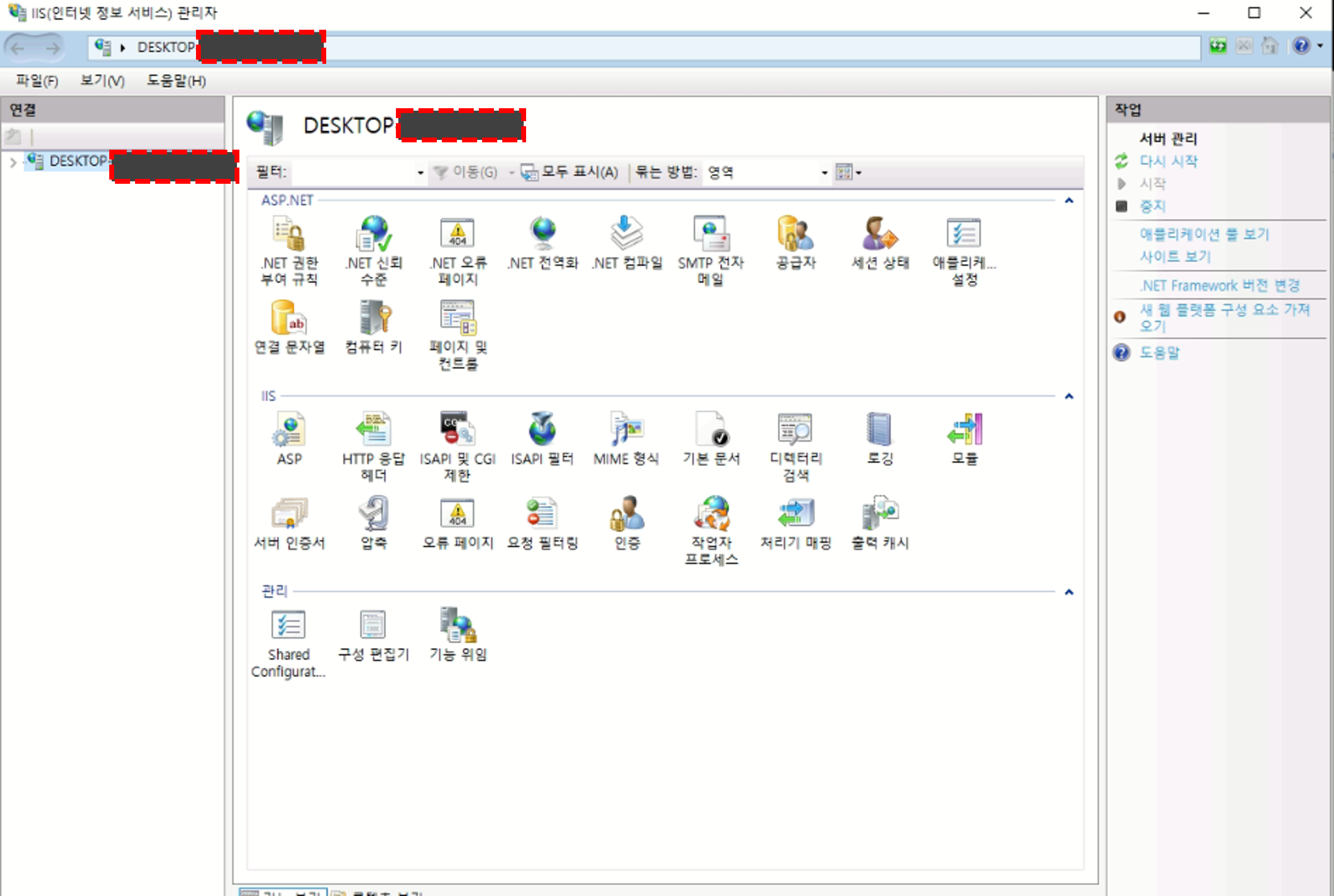 IIS 설정이 완료되었다면 이제 IIS를 어떻게 관리하는지 알아볼 차례입니다. 다시 컨트롤 패널로 가서 "시스템 및 보안" > "관리 도구" > "인터넷 정보 서비스(IIS) 관리자"를 클릭하세요. 여기서 웹 사이트를 추가하거나 응용 프로그램 풀을 관리할 수 있습니다.