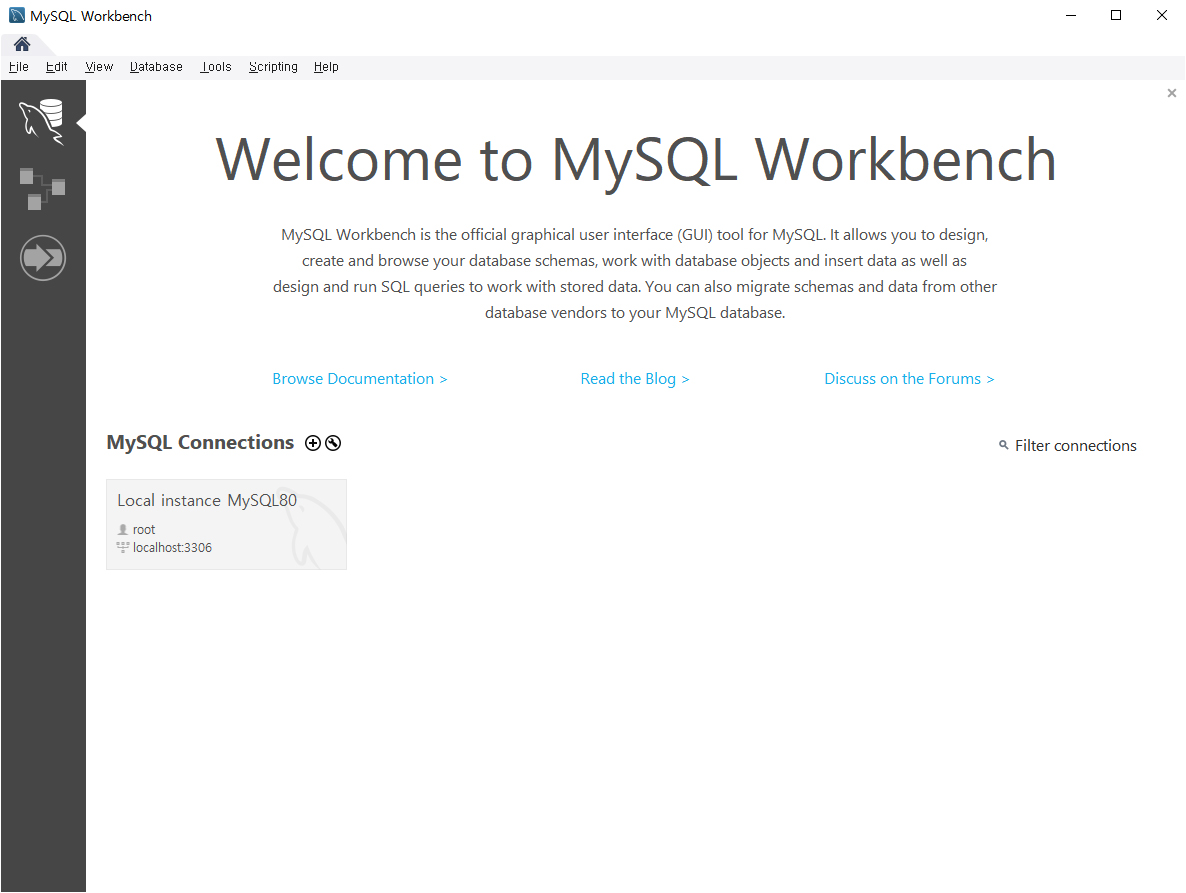 설치가 완료되면 MySQL Workbench를 실행하여 GUI 환경에서 데이터베이스를 관리할 수 있습니다.