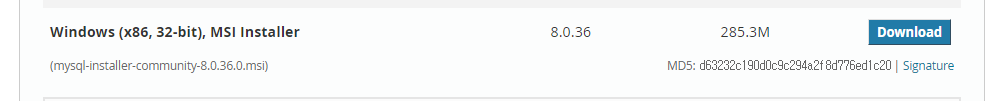 저는 윈도우를 사용하고 있기 때문에 Windows용 MySQL 인스톨러를 다운로드했습니다.