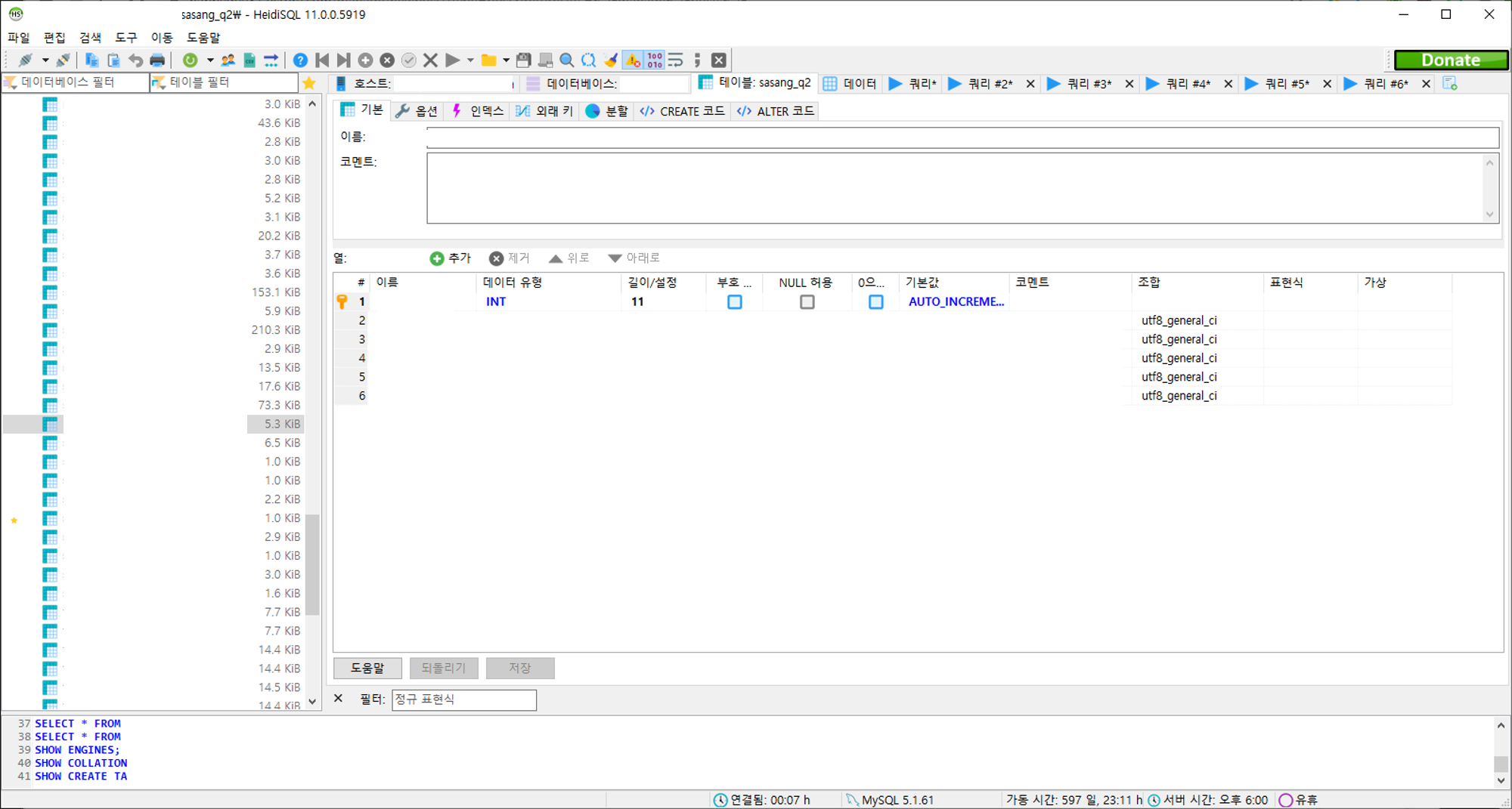 HeidiSQL은 데이터베이스 관리와 쿼리 연습에 매우 유용한 툴입니다.