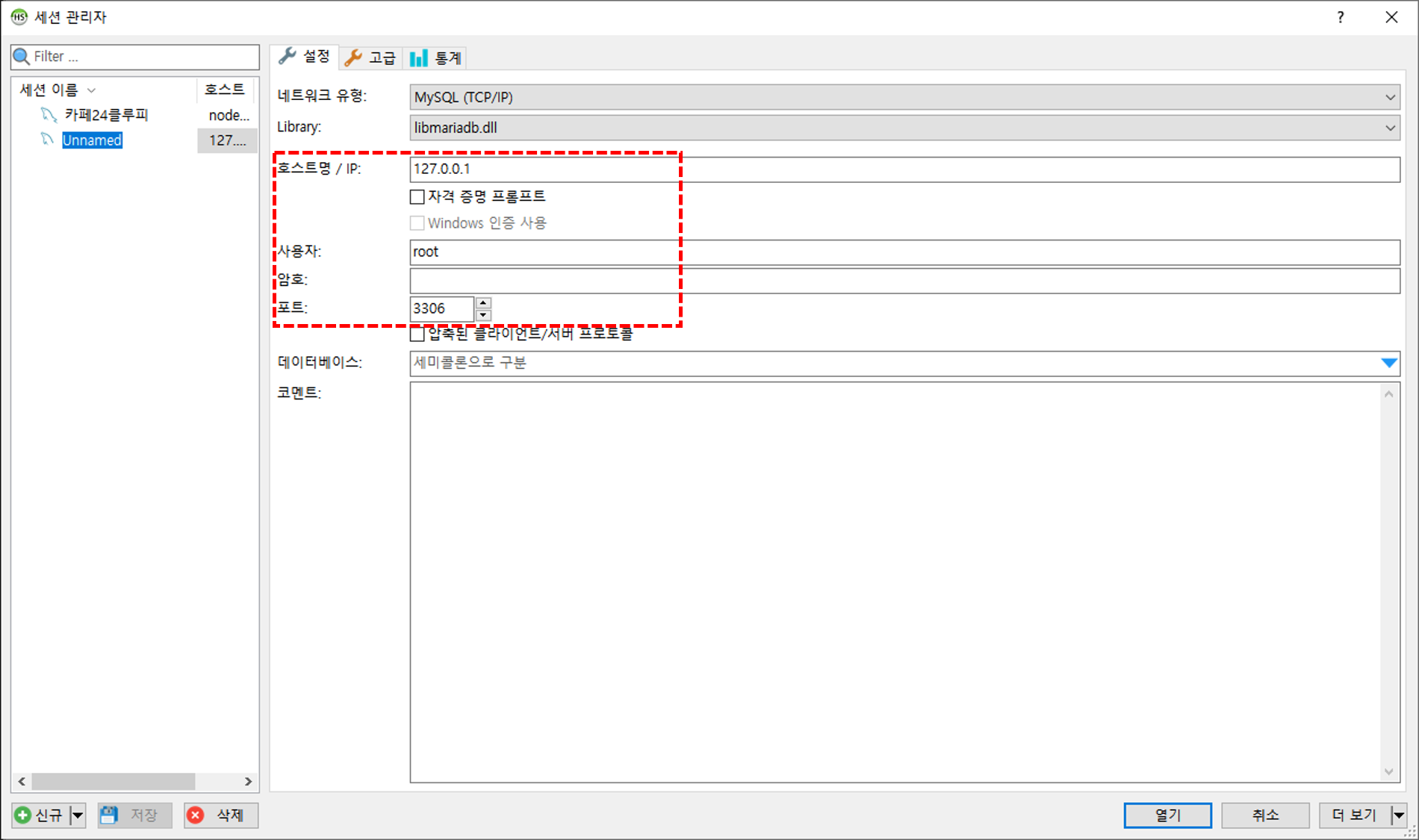 예를 들어, 로컬 MySQL 서버에 연결할 경우 호스트 주소로 127.0.0.1을 사용할 수 있습니다.