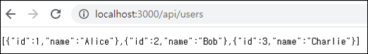 - 웹 브라우저나 API 테스트 도구를 이용해 http://localhost:3000/api/users 주소로 요청을 보내면 세 사용자의 정보를 반환받을 수 있다.