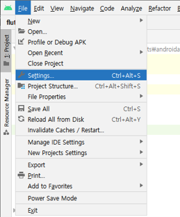 1단계: 안드로이드 스튜디오에서 Flutter SDK 경로 설정하기
